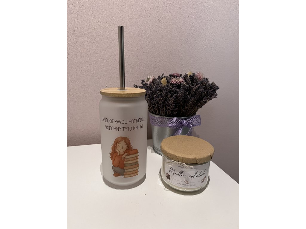 Posuňte zážitek ze čtení na další level s touto originální skleničkou pro pravé knihomoly! Součástí skleničky je bambusové víčko a kovové brčko, objem skleničky je 550 ml. Sklenice nesmí do myčky: Pro zachování maximální sytosti barev a dlouhé životnosti motivu doporučujeme pouze ruční mytí.
