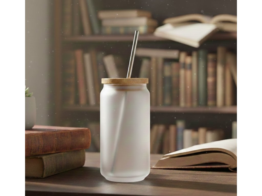 Chcete vlastní skleničku s bambusovým víčkem a kovovým brčkem? Ráda ji pro Vás vytvořím.
